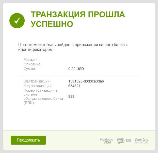 3. На следующей странице выполните действия: - Введите номер банковской карты, внимательно заполнив все поля. - Введите срок действия карты. - Введите номер CVC (он расположен на обороте карты и состоит из трёх цифр). - Введите код защиты. - Eсли введённые данные верны, нажмите Оплатить 4. Об успешном завершении платежа вы будете проинформированы сообщением следующего вида: